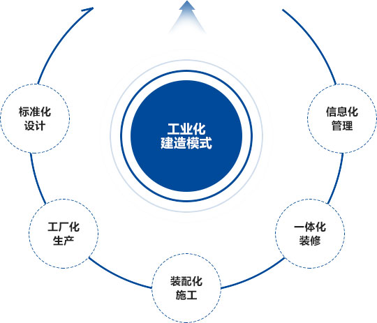 自2013年起,集团围绕装配式混凝土结构、钢结构、木结构、装配式装修、智慧建造等技术方向,积极构建以现代集成建造为特征、高效施工为特点,形成技术含量高、产业链完善的产业体系,同时辅以信息化设计、标准化管理、物流化配送、智能化服务等配套支撑,形成功能齐全的产业集群。